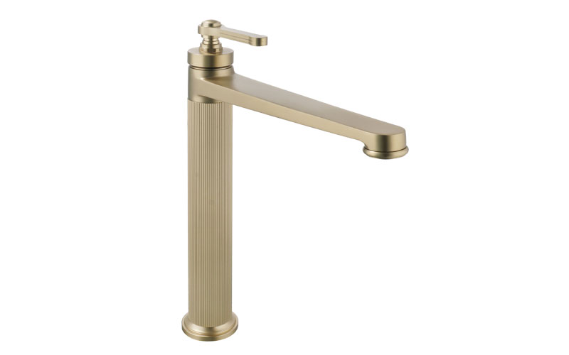 B-002G Brass deck mounted gold brushed tall square single lever bathroom basin taps